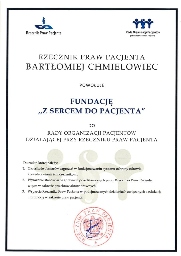 Z dumą informujemy, że Fundacja „Z Sercem do Pacjenta” aktywnie uczestniczy w działaniach Rady Organizacji Pacjentów działającej przy Rzecznik Praw...